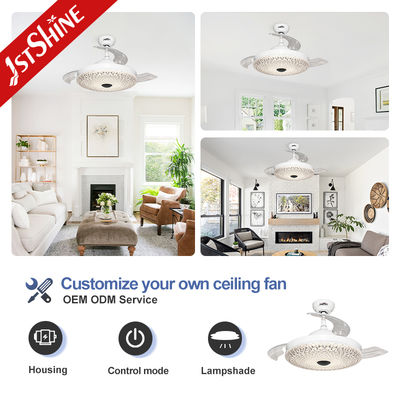 الـشفرات أكريلية قابلة للانسحابيمتد تلقائيًا عندما يكون المروحة مفتوحة ويتم سحبها عندما تكون مغلقة ، مما يحافظ على مظهر نظيف يشبه الثريا.شاشة مصباح أكريليك من النوع الكريستالييعزز انتشار الضوء ويضيف لمسة فاخرة إلى أي داخلي.